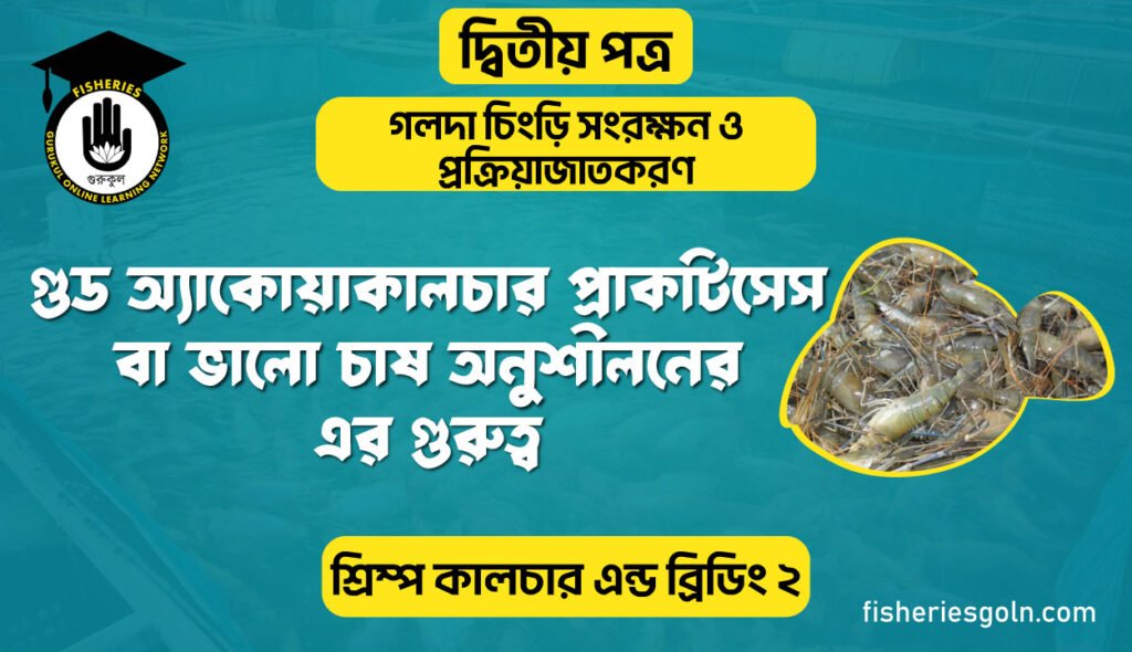 আমাদের আজকের আলোচনার বিষয় – গুড অ্যাকোয়াকালচার প্রাকটিসেস বা ভালো চাষ অনুশীলনের এর গুরুত্ব। যা ” গলদা চিংড়ি সংরক্ষন ও প্রক্রিয়াজাতকরণ ” অধ্যায়ের অন্তর্ভুক্ত ।